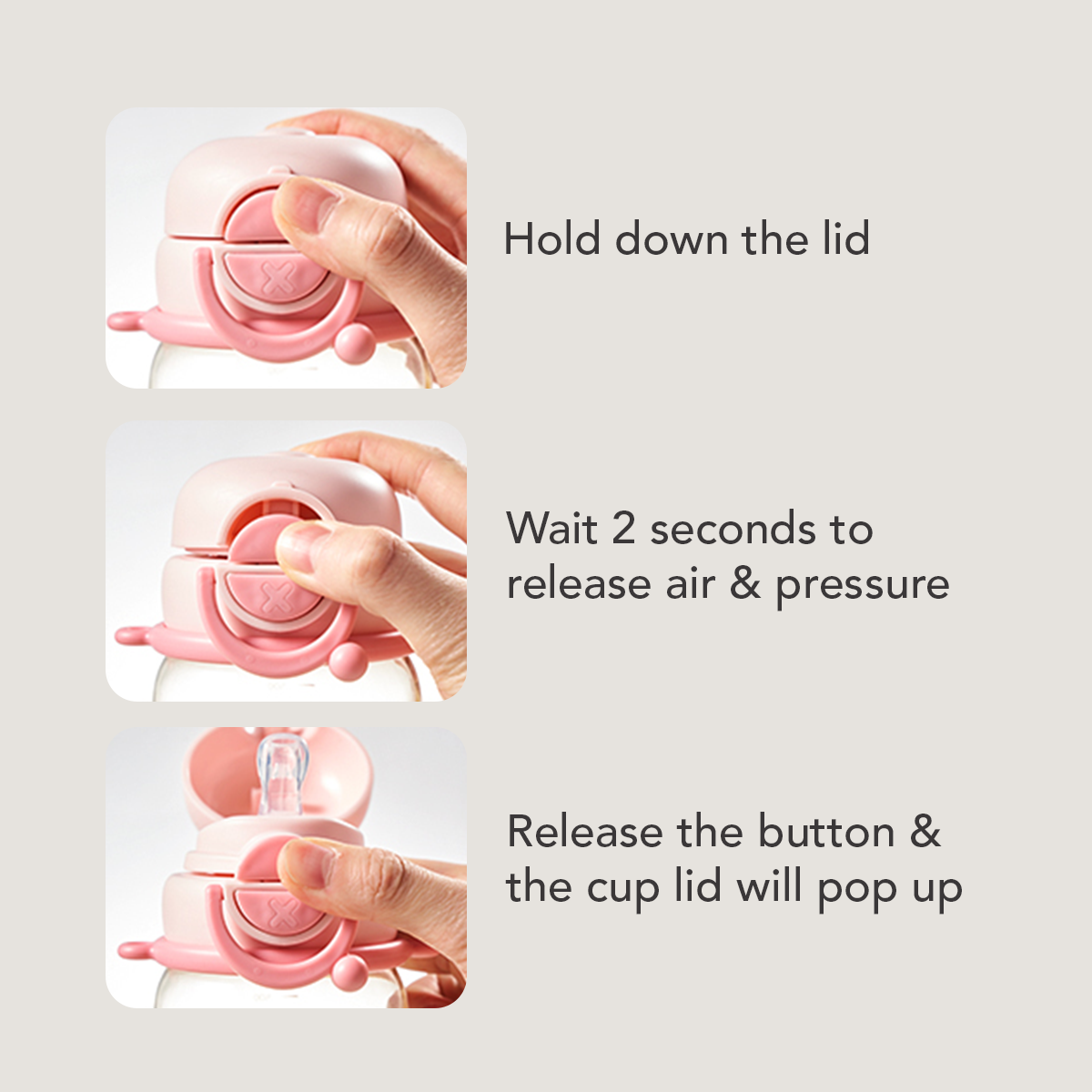 - Anti Tumpah Maksimal: Sistem ventilasi dua tahap, lubang udara, pengunci yang kuat, dan cincin kedap udara bekerja sama menjaga minuman tetap di dalam gelas, bahkan saat terbalik.