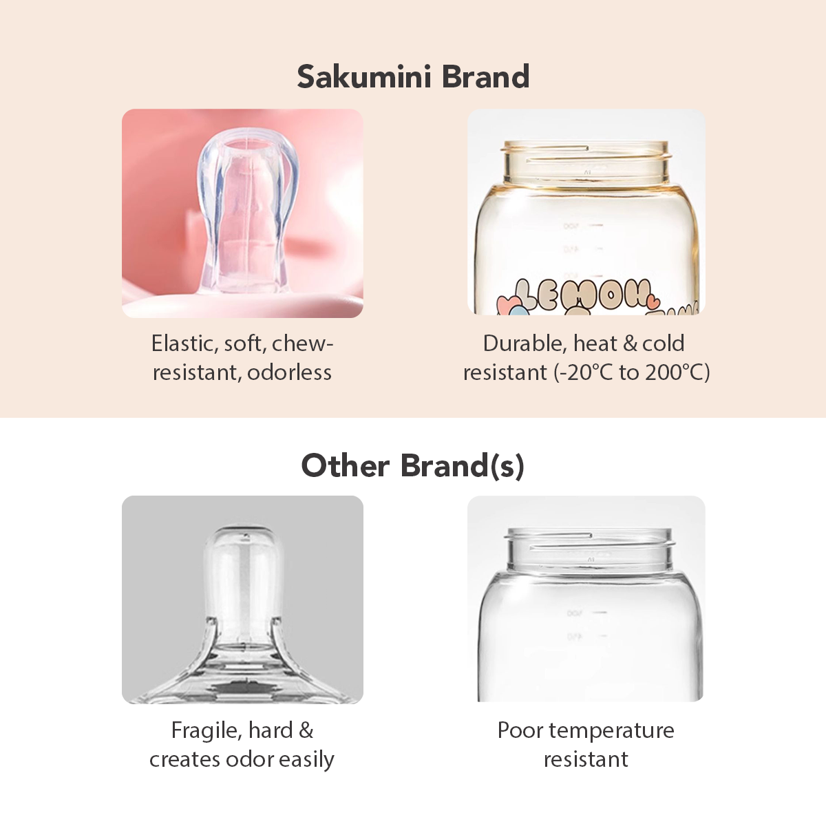 - Aman dan Sehat: Terbuat dari bahan Tritan, PP, dan silikon berkualitas tinggi yang bebas BPA, sehingga aman untuk si kecil.