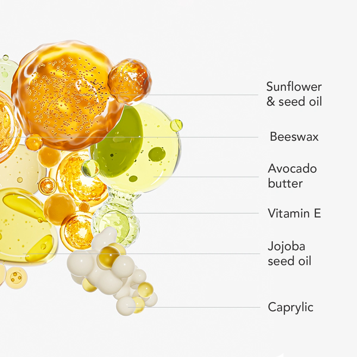 Komposisi Bahan: Sunflower Seed Oil, Jojoba Seed Oil, Shea Butter, Comfrey Root Extract, Lavender Oil, Capric Triglyceride, Peppermint Oil, Tocopherol (Vitamin E), Bisabolol.