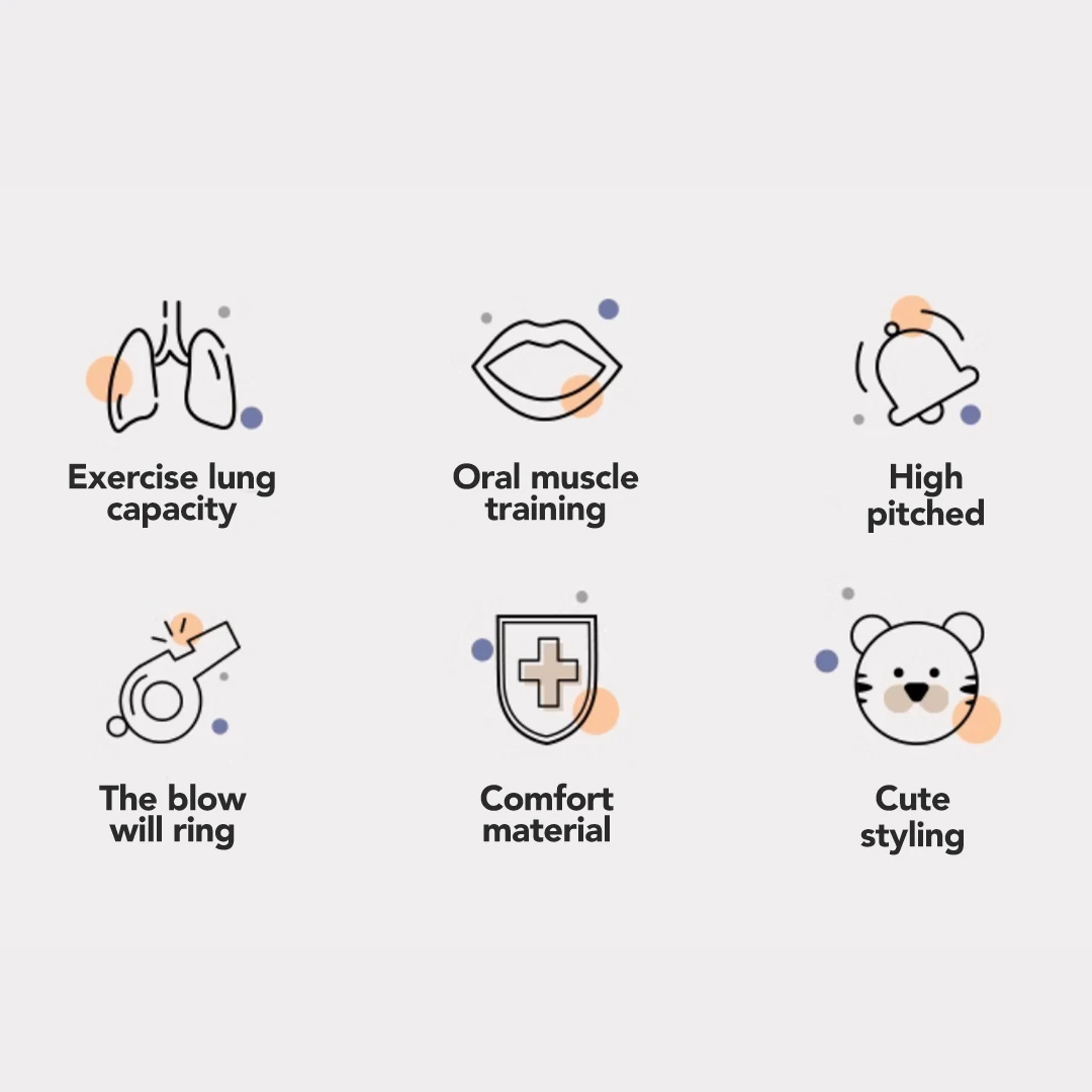 Latih otot mulut melalui permainan latihan mulut, agar dapat tingkatkan kemampuan pengucapan yang lebih jelas dan berbicara lebih runtut oleh si kecil. Belajar dari prinsip bunyi klarinet dan desain sesuai bentuk mulut si kecil, akan berbunyi setelah ditiup dan suara peluitnya indah dan menyenangkan.
